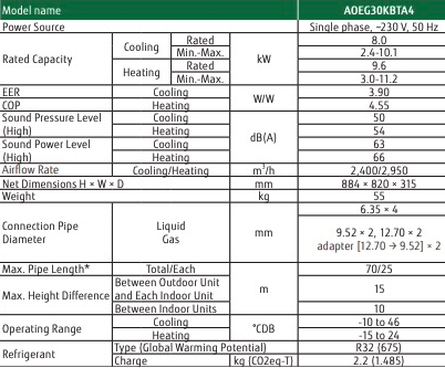 Fujitsu Airstage multi AOEG30KBTA4 (quattro) kültéri inverter 8 kW